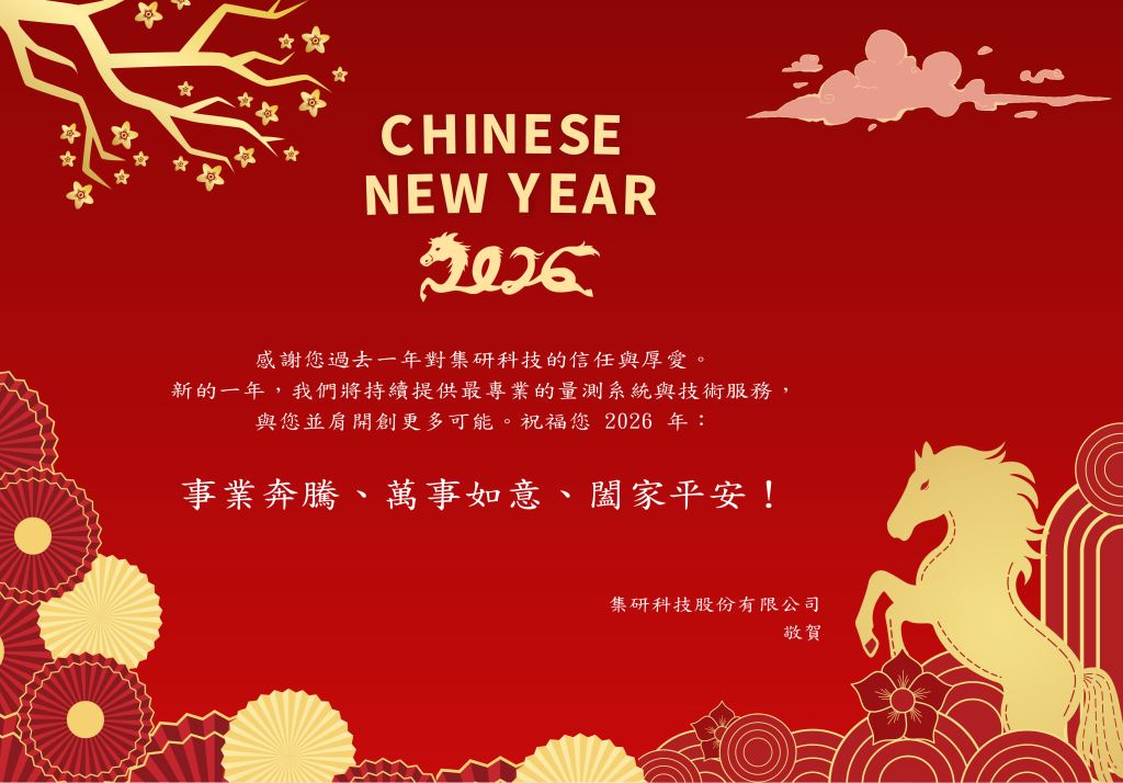 感謝您在過去一年對 集研科技 的支持與信任。迎接 2026 農曆新年,我們全體同仁在此預祝您新春愉快,萬事如意!