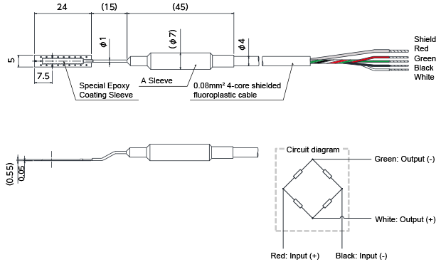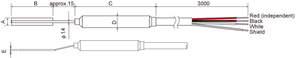 此款應變計採用全密封結構,感測元件封裝於不鏽鋼管中。 此設計能簡化防濕與防水塗層處理,並特別適用於長期量測或嚴苛環境中的應變測試。
