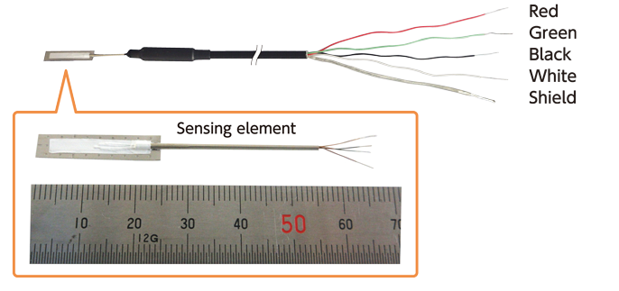 此款應變計可在最高 800°C 的環境下進行靜態與動態量測。 然而,由於感測元件的結構設計,建議在 600°C 以上的溫度條件下進行量測。 感測部位採用半橋式結構(由作用元件與補償元件組成),並透過隨附的溫度補償電路板,以全橋方式進行測量。 此外,因應變計具備小型背基及標準配備的細型保護套管與電纜,可適用於狹窄或曲面的安裝環境。