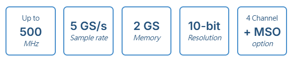 首款 500 MHz 頻寬、首款 5 GS/s 取樣率、首款 2 GS 超深度記憶體的 USB 供電示波器。 小巧輕便的 USB-C 設計,結合高效能與便攜性,適合嵌入式系統、電力電子、通訊與教育應用。